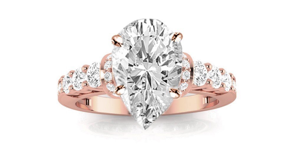 1.25 Ctw 14K Rose Gold Designer Four Prong Pave Set Round Diamonds Engagement Ring Pear Shape (0.5 Ct F Color SI3 Clarity Center Stone)