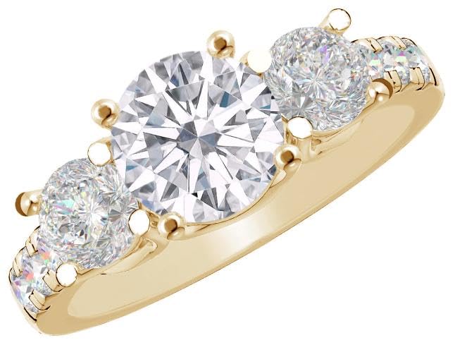 3 Carat Round LAB GROWN Gemstone and LAB GROWN Diamond Engagement Ring (2.5ct Center, AAAA Heirloom Quality) RIPS1W9DI 14K Yellow Gold