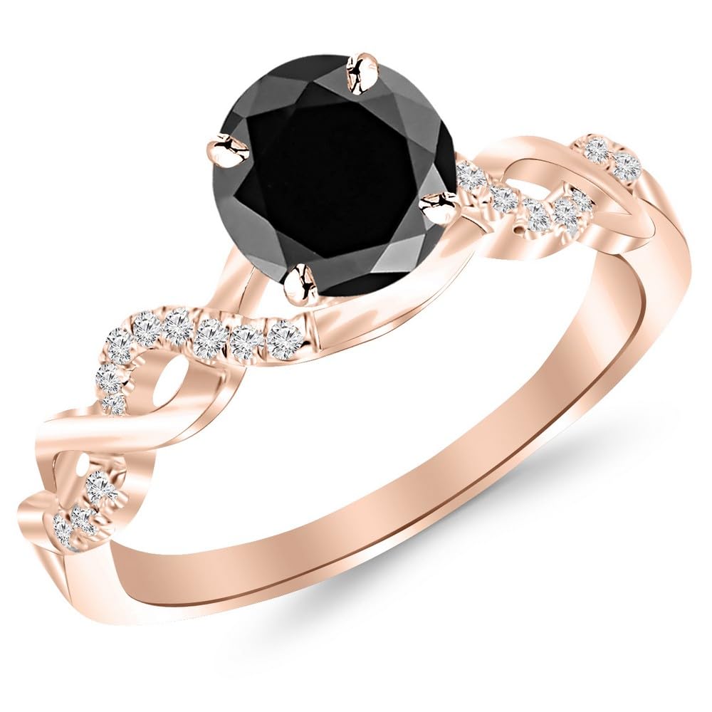 3.13 Carat 14K Rose Gold Twisting Infinity Gold and Diamond Split Shank Pave Set Diamond Engagement Ring with a 3 Carat Black Diamond Center [Heirloom Quality]
