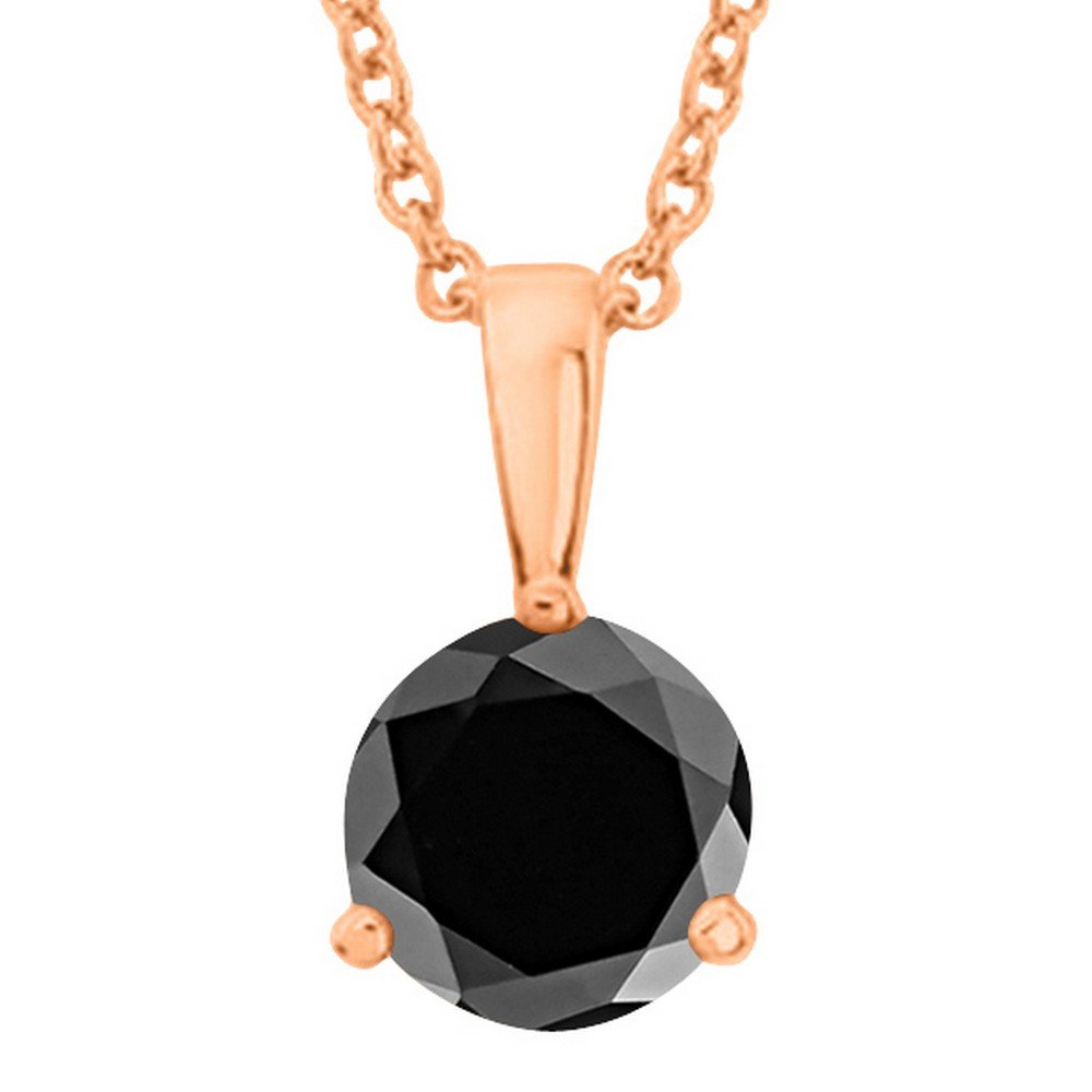 1 Carat 14K Rose Gold Round Black Diamond 3 Prong Solitaire Pendant Necklace (AAA Quality) W/ 16″ Silver Chain