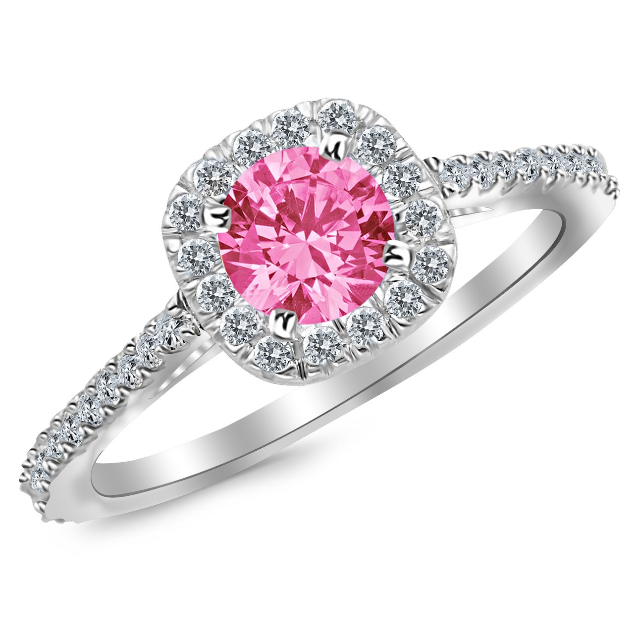 1.35 Carat 14K White Gold Gorgeous Classic Cushion Halo Style Diamond Engagement Ring with a 1 Carat Natural Pink Sapphire Center (Heirloom Quality)