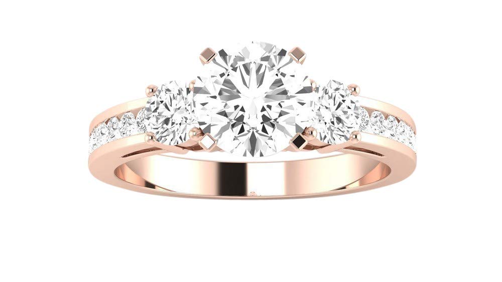 14K Rose Gold 1.1 CTW Round Cut Channel Set 3 Three Stone Diamond Engagement Ring, H-I Color I2 Clarity 0.5 Ct Center