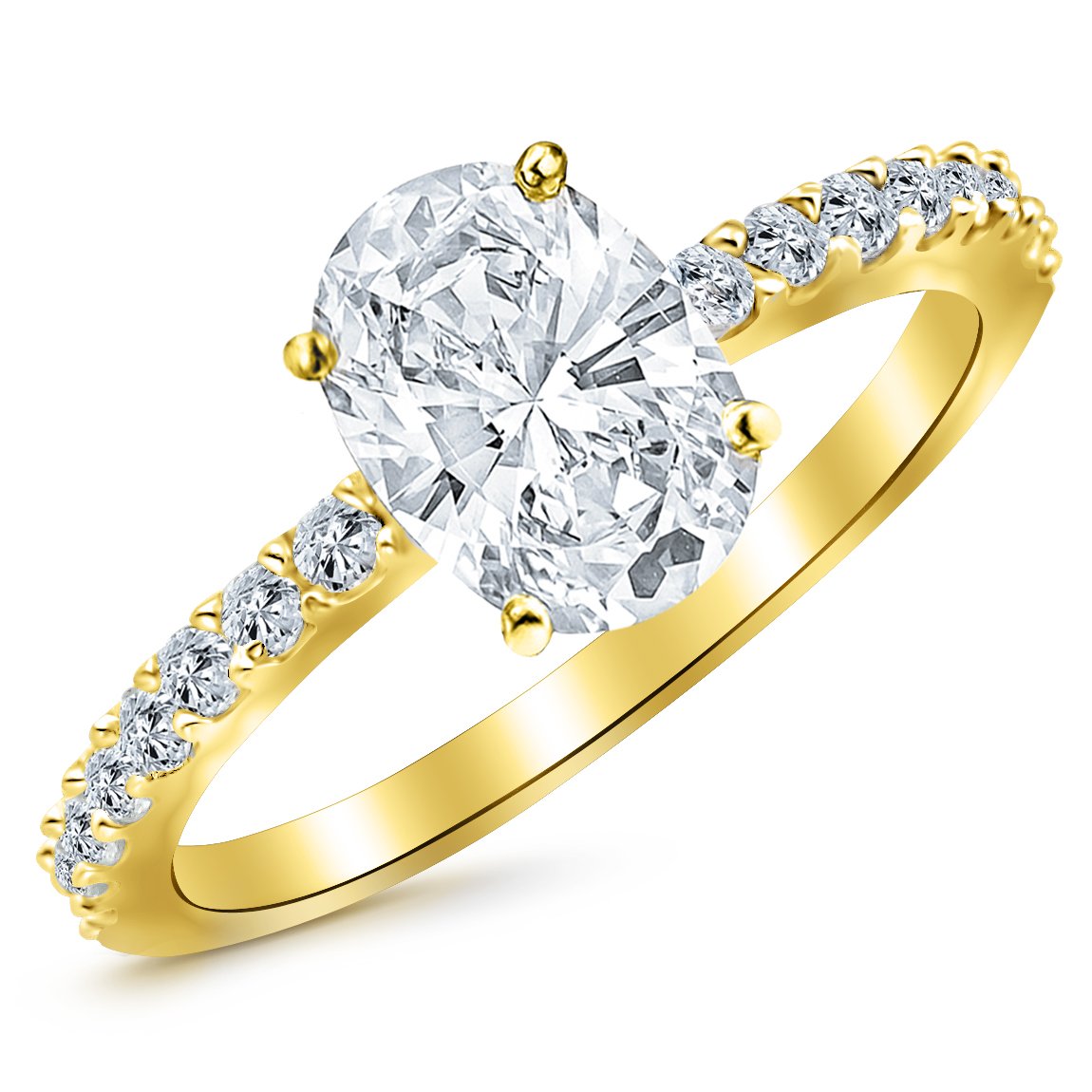 Home 14K Yellow Gold 1.1 CTW Classic Side Stone Pave Set Diamond Engagement Ring w/ 0.75 Ct GIA Certified Oval Cut K Color SI1-SI2 Clarity Center