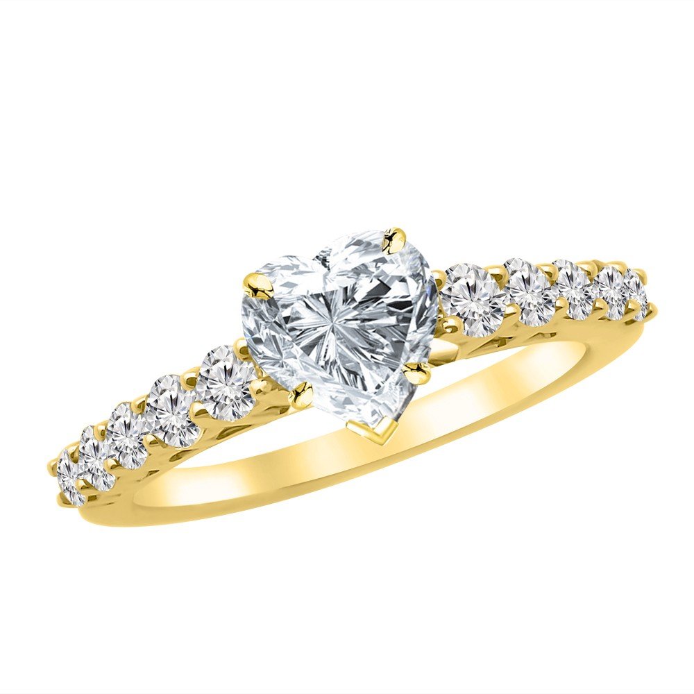 1.25 Ctw 14K Yellow Gold Graduating Classic Heart Shape Diamond Engagement Ring (0.5 Ct D Color I1 Clarity Center Stone)