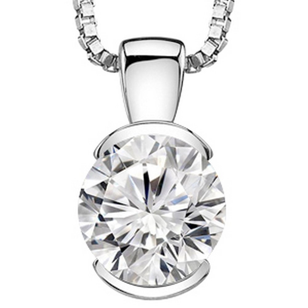 0.5 Carat 14K White Gold Round Diamond Half Bezel Solitaire Pendant Necklace D-E Color I1 Clarity