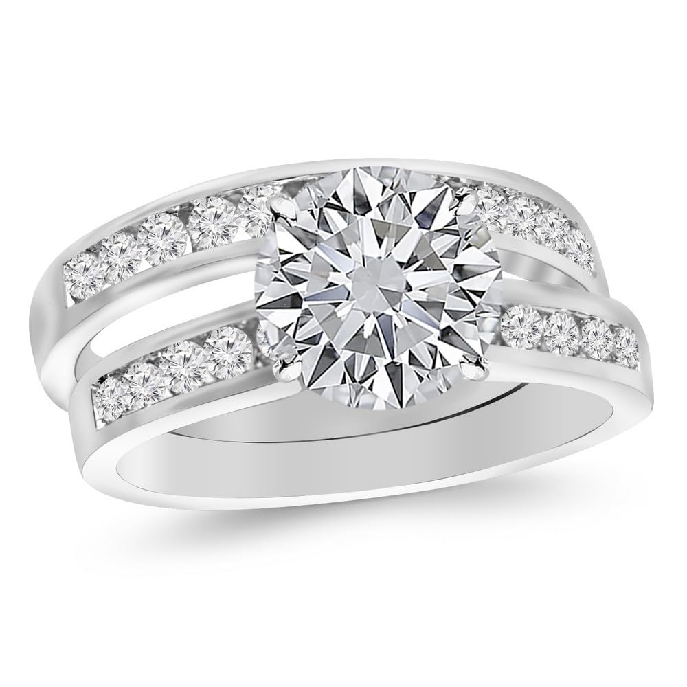 14K White Gold 2.25 Carat LAB GROWN DIAMOND Classic Channel Set Wedding Set Bridal Band & Round Cut Diamond Engagement Ring (G-H Color VS2-SI1 Clarity 1.5 Ct Center)