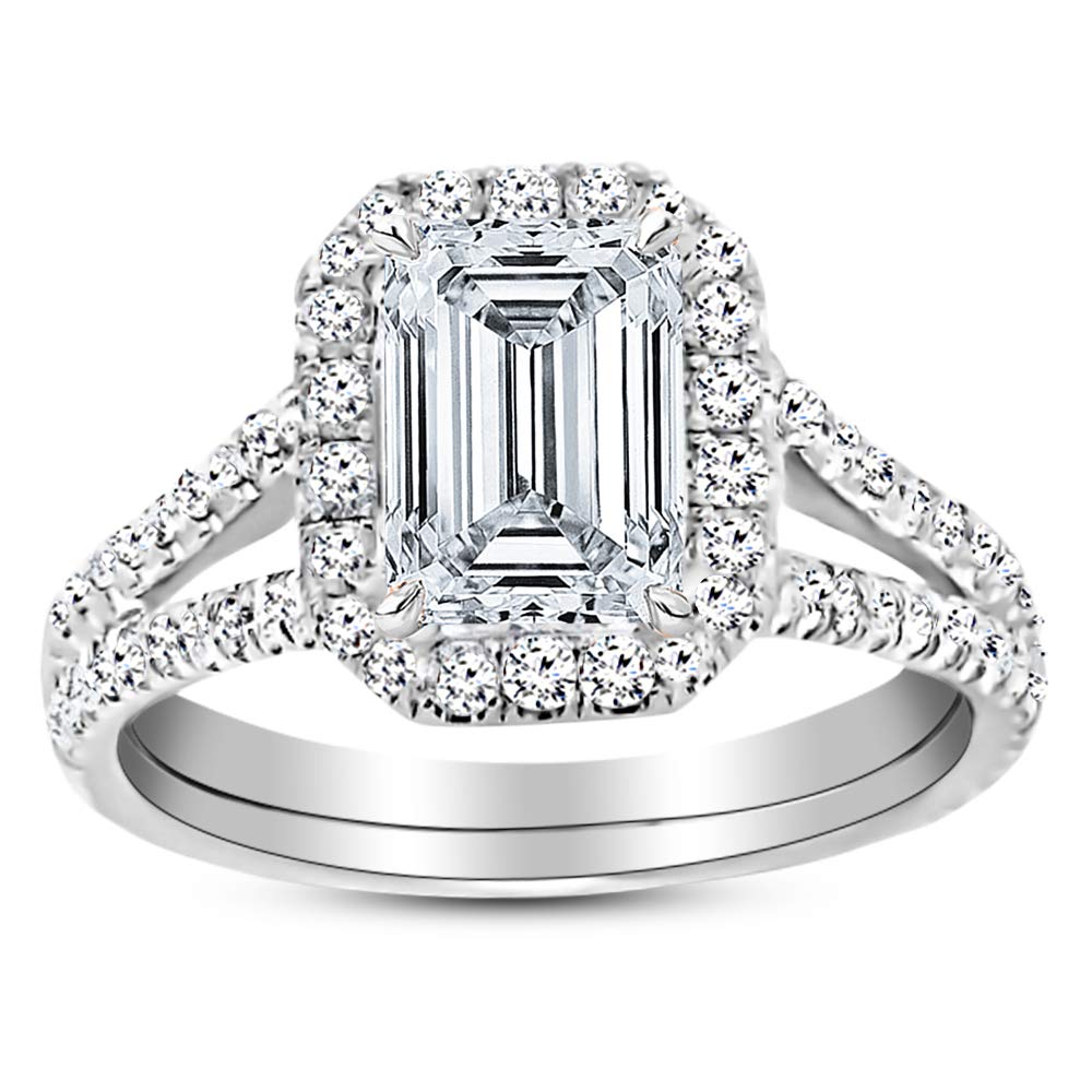 14K White Gold 3.75 Carat LAB GROWN DIAMOND Split Shank Emerald Cut Diamond Engagement Ring (D-E Color VS1-VS2 Clarity 3 Ct Center)