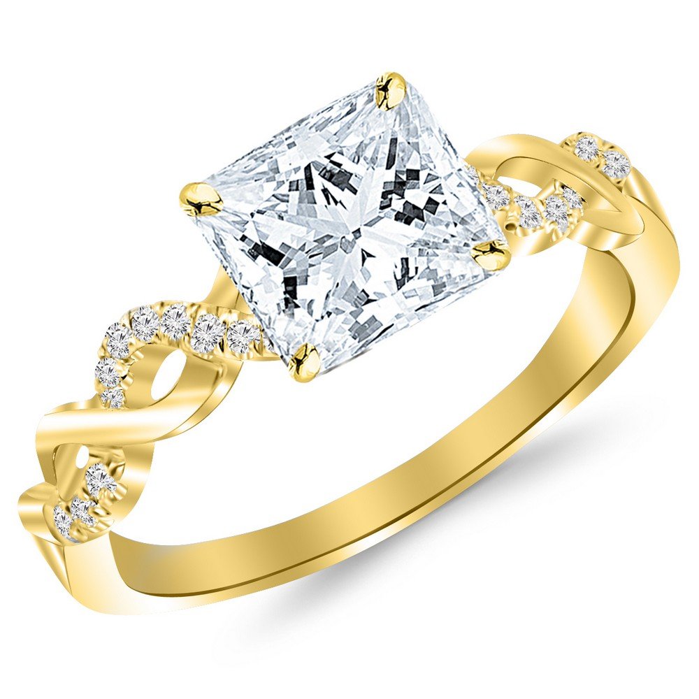 14K Yellow Gold 0.88 Carat LAB GROWN DIAMOND Twisting Infinity Gold and Diamond Split Shank Pave Set Princess Cut Diamond Engagement Ring (E-F Color VS2-SI1 Clarity 0.75 Ct Center)