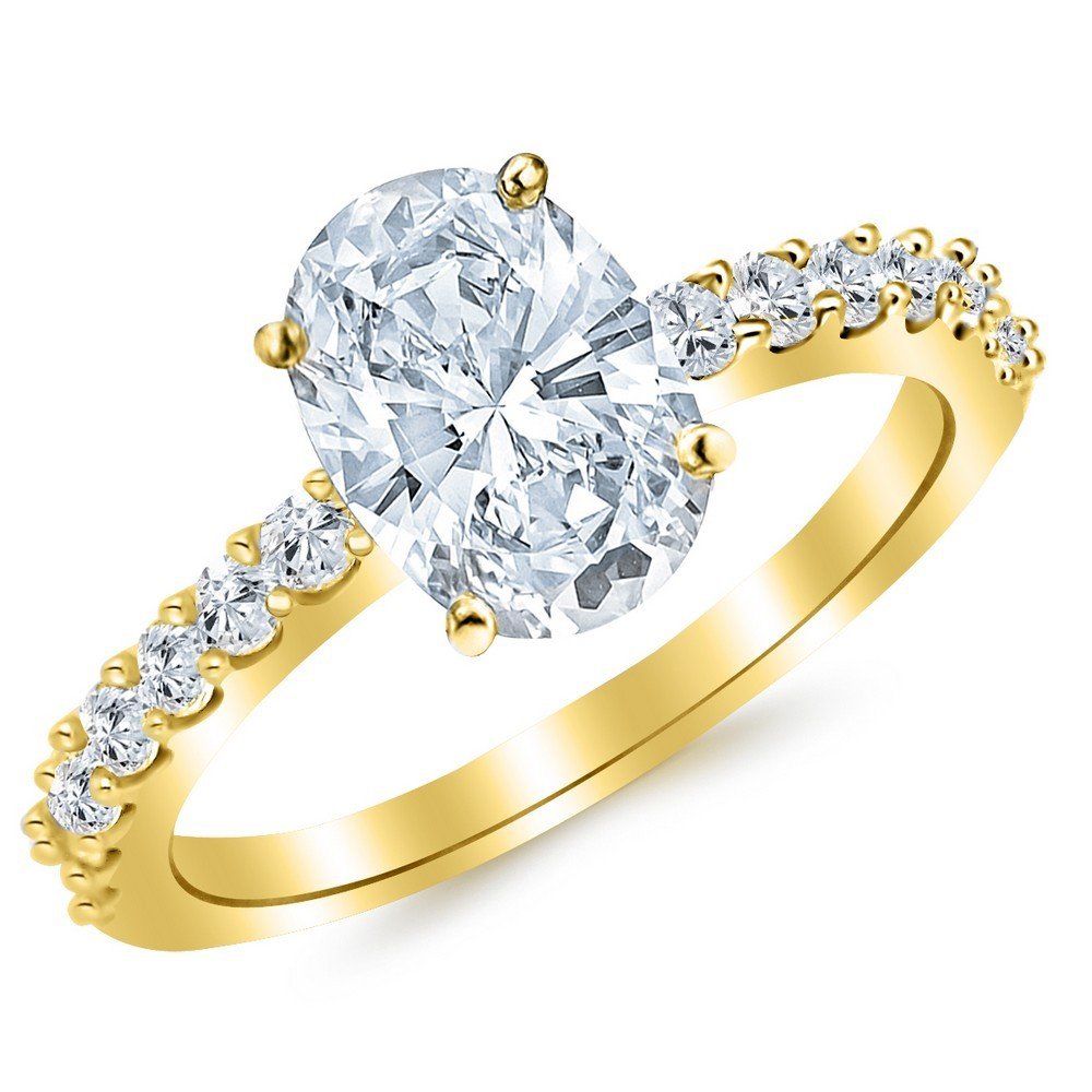 Houston Diamond District 14K Yellow Gold 2.5 Carat LAB GROWN DIAMOND Classic Prong Set Oval Cut Diamond Engagement Ring (E-F Color VS1-VS2 Clarity 2 Ct Center) Size 8