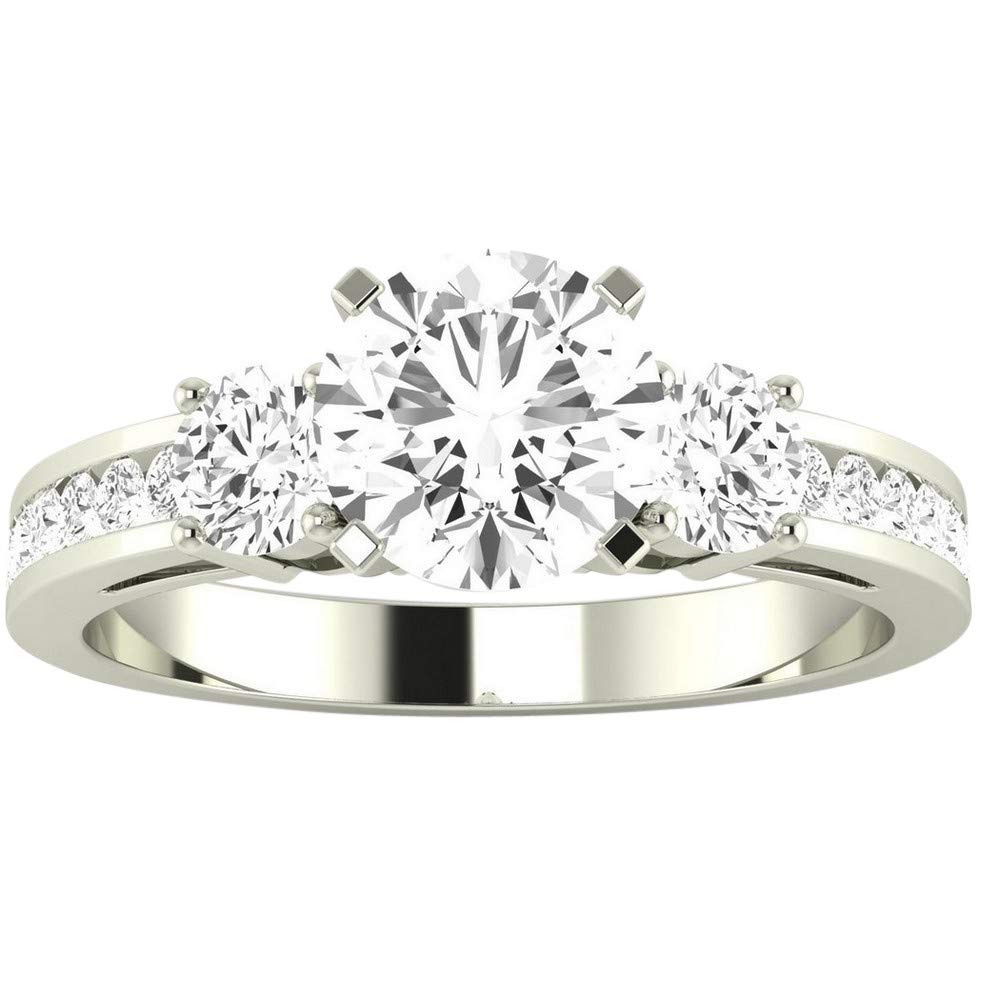 Platinum 1.75 Carat LAB GROWN IGI CERTIFIED DIAMOND Channel Set 3 Three Stone Round Cut Diamond Engagement Ring (E-F Color VS2-SI1 Clarity 1 Ct Center)