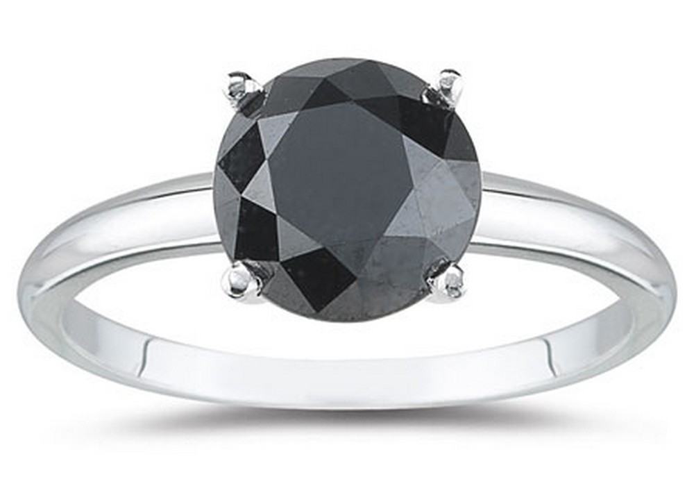 Home 1 Carat 18K White Gold Round Black Diamond Solitaire Ring (AAA Quality)