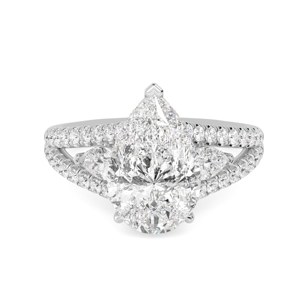 3 Carat (ctw) 14K White Gold Pear,Round Cut LAB GROWN Diamond Three Stone Engagement Ring (Color E-F Clarity VS2-SI1)