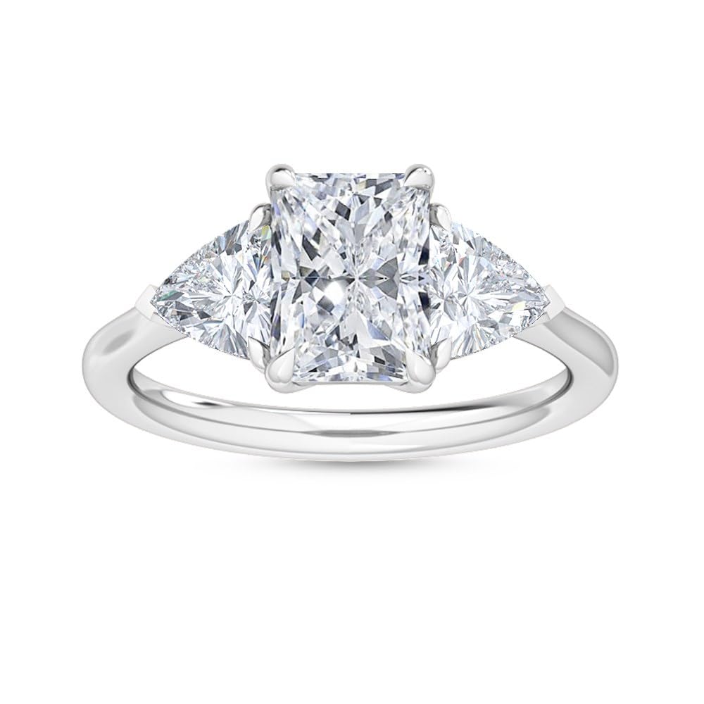 Houston Diamond District 1 to 5 Carat (ctw) Radiant,Trilliant Cut LAB GROWN Diamond Three Stone Engagement Ring (Color D-E Clarity VS1-VS2) 14K White Gold 5 Carat Size-9