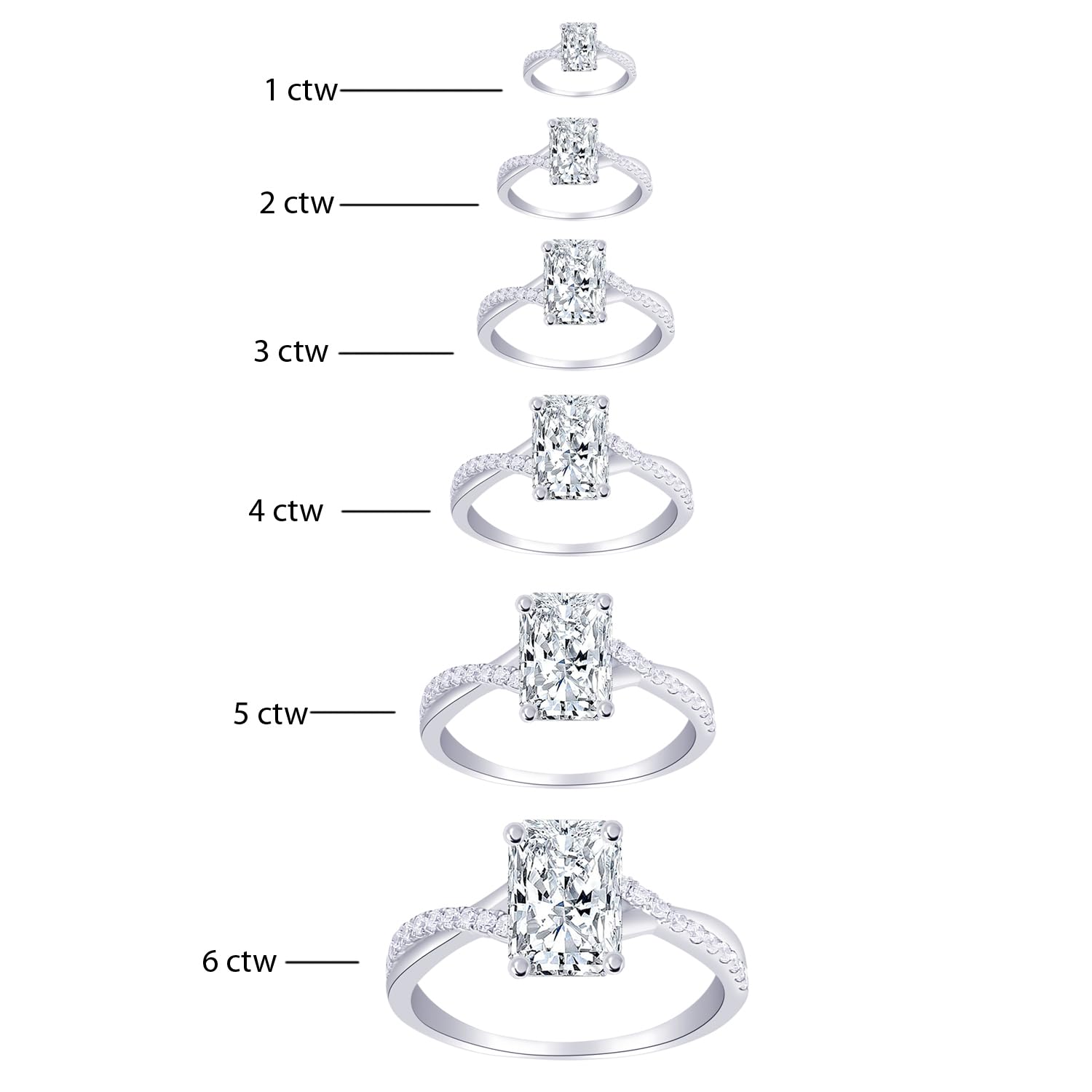 Houston Diamond District 1-5 Carat (ctw) LAB GROWN Diamond Side Stone Engagement Ring (Color E-F Clarity VS2-SI1) Platinum 1 Carat Emerald Shape