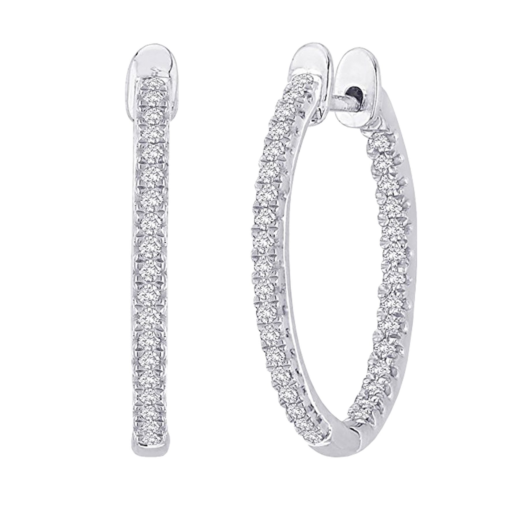 Home 2 Carat t.w. Oval Inside Outside LAB GROWN Diamond Hoop Earrings Premium Collection 14K White Gold