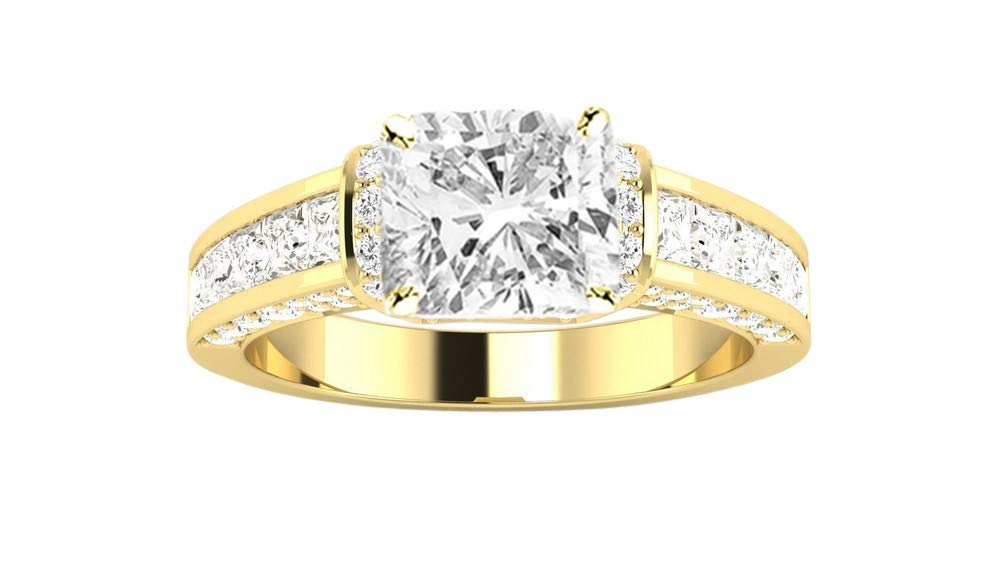 14K White Gold 5 Carat LAB GROWN DIAMOND Contemporary Channel Set Princess And Pave Round Cut Cushion Cut Diamond Engagement Ring (E-F Color VS2-SI1 Clarity 4 Ct Center)