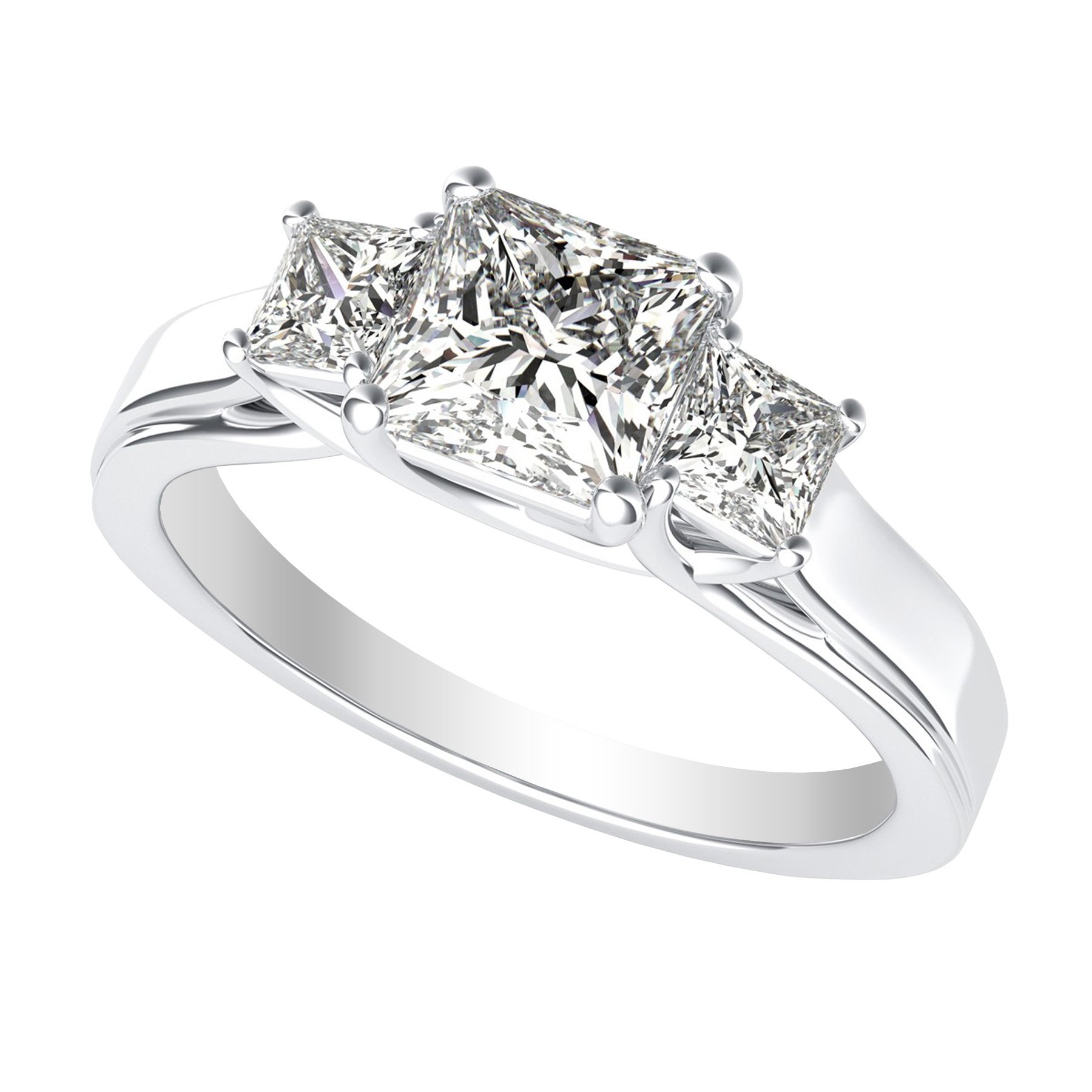 Houston Diamond District 0.5 to 5 Carat 14K White Gold IGI Certified LAB Grown Diamond 3 Stone Engagement Ring (D-E Color, VS1-VS2 Clarity) Princess Shape 2 Carat Size-9