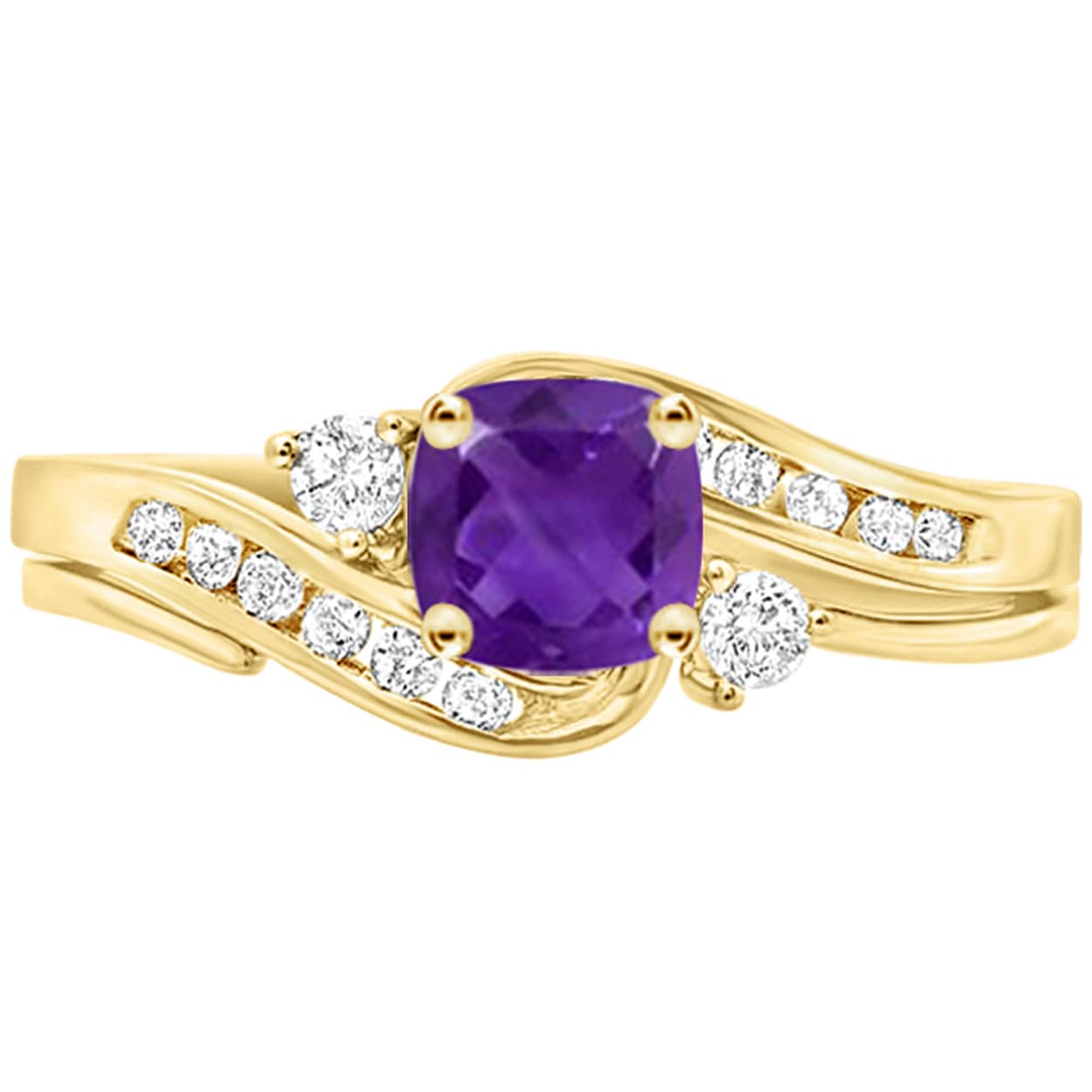 Houston Diamond District 1 to 6 Carat Cushion 14K Yellow Gold LAB GROWN Gemstone and LAB GROWN Diamond Engagement Ring (AAAA Heirloom Quality) Amethyst Gemstone 2 Carat Size-6.5 1.5 Carat Center