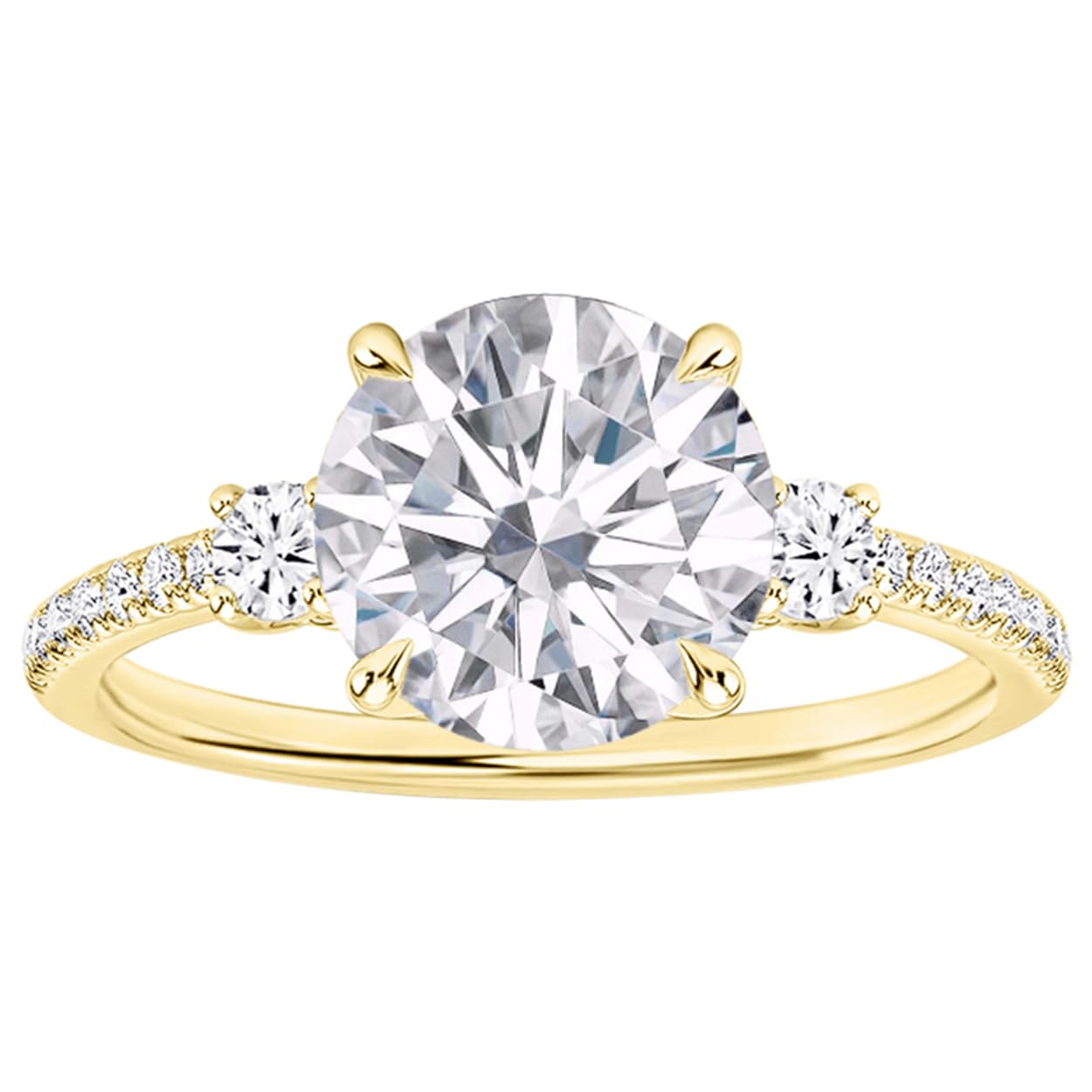 Houston Diamond District 1 to 6 Carat Round LAB GROWN Diamond Engagement Ring (AAAA Heirloom Quality) 14K Yellow Gold 3.5 Carat Size: 5