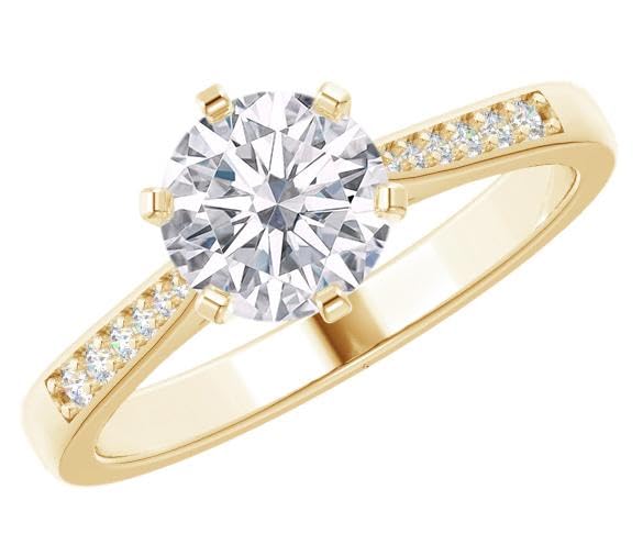 2.5 Carat Round LAB GROWN Gemstone and LAB GROWN Diamond Engagement Ring (2.0ct Center, AAAA Heirloom Quality) RIPS7W9DI 14K Yellow Gold