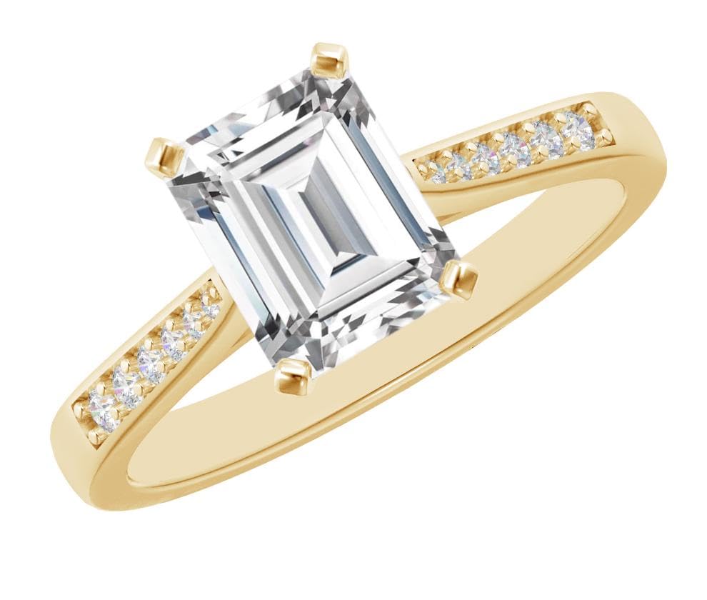 2 Carat Emerald LAB GROWN Gemstone and LAB GROWN Diamond Engagement Ring (1.5ct Center, AAAA Heirloom Quality) RIPS7W3DI 14K Yellow Gold