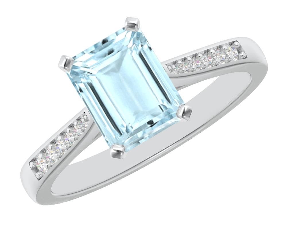 1 Carat Emerald LAB GROWN Aquamarine and LAB GROWN Diamond Engagement Ring (0.5ct Center, AAAA Heirloom Quality) RIPS7W3AM 14K White Gold