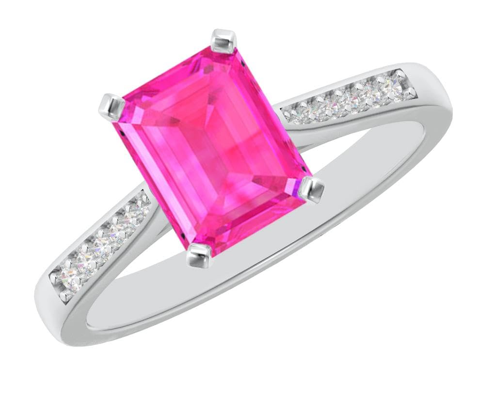 1 Carat Emerald LAB GROWN Pink Sapphire and LAB GROWN Diamond Engagement Ring (0.5ct Center, AAAA Heirloom Quality) RIPS7W3AM 14K White Gold