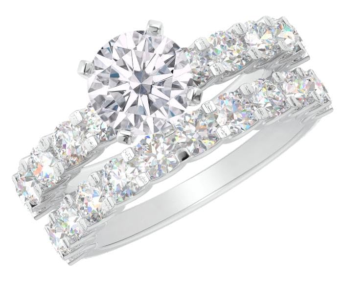 2 Carat Round LAB GROWN Gemstone and LAB GROWN Diamond Wedding Bridal Set (1.5ct Center, AAAA Heirloom Quality) RIPS9W9DI 14K White Gold