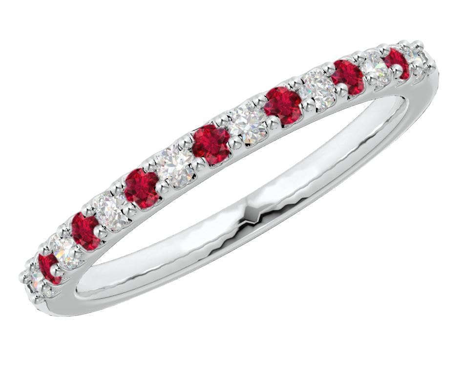 1 Carat Round LAB GROWN Ruby and Alternating LAB GROWN Diamond Wedding Band (0.5ct Center, AAAA Heirloom Quality) RIPS28W9AM 14K White Gold