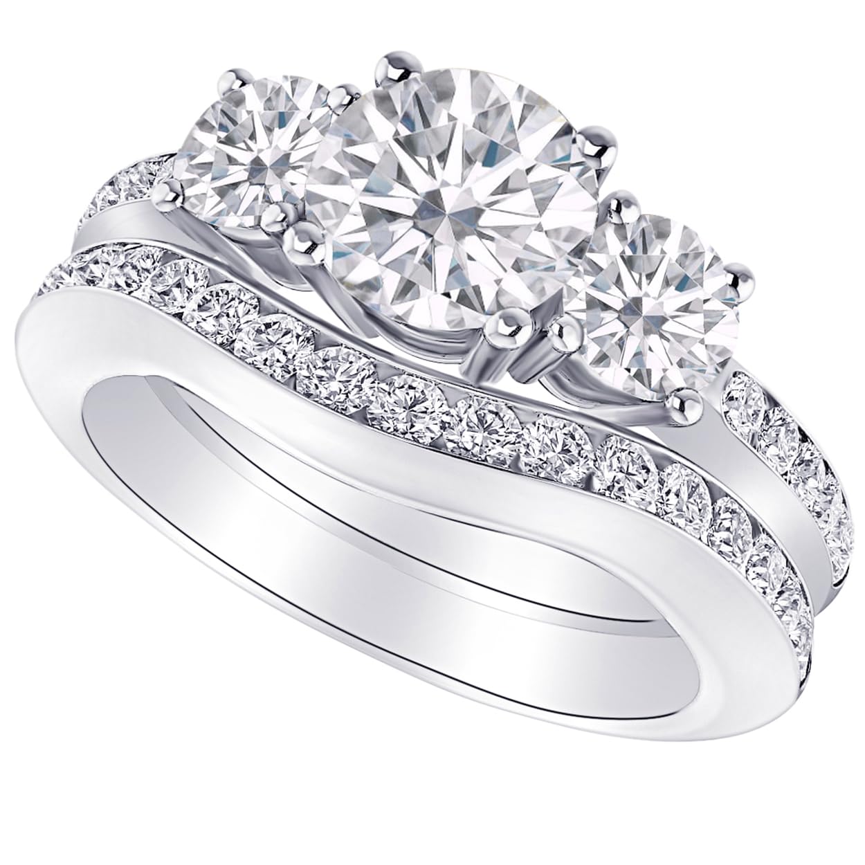 4 Carat (ctw) Platinum Round Cut LAB GROWN Diamond Engagement Ring Three Stone Wedding Bridal Set (Color D-E Clarity VS1-VS2)