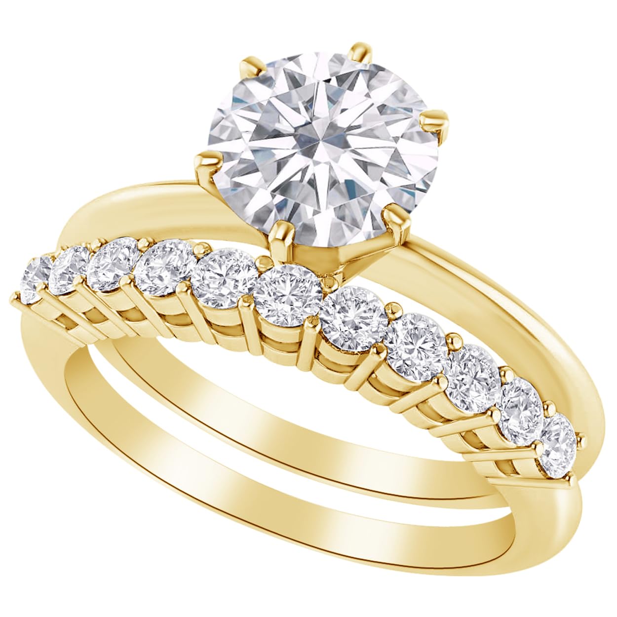 1.5 Carat (ctw) 14K Yellow Gold Round Cut LAB GROWN Diamond Engagement Ring Diamond Solitaire Studded Band Wedding Bridal Set (Color E-F Clarity VS2-SI1)
