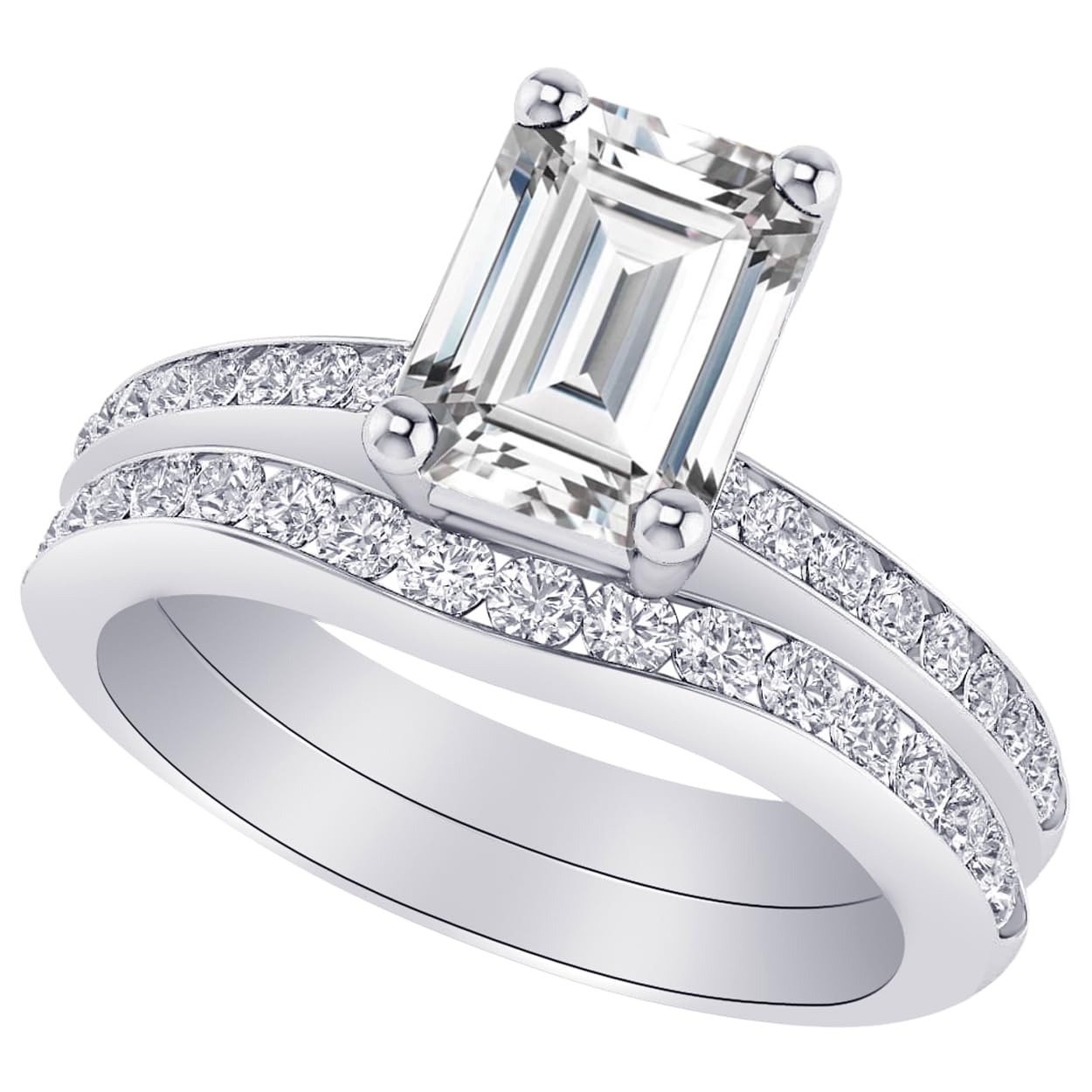 3 Carat (c.t.w) Platinum Emerald Cut LAB GROWN Diamond Engagement Ring Emerald Cut Wedding Bridal Set (Color D-E Clarity VS1-VS2)