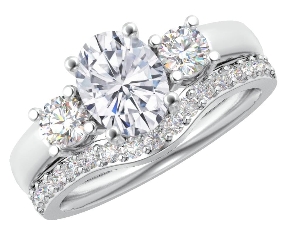 6 Carat Oval LAB GROWN Gemstone and LAB GROWN Diamond Wedding Bridal Set (5.5ct Center, AAAA Heirloom Quality) RIPS65W7DI 14K White Gold
