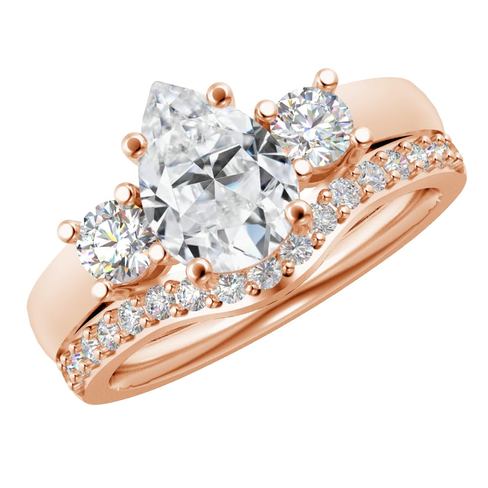 Home 5.5 Carat Pear LAB GROWN Gemstone and LAB GROWN Diamond Wedding Bridal Set (5.0ct Center, AAAA Heirloom Quality) RIPS65W8DI 14K Rose Gold