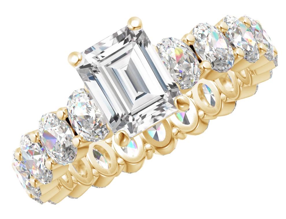 6 Carat Emerald LAB GROWN Gemstone and LAB GROWN Diamond Engagement Ring (5.5ct Center, AAAA Heirloom Quality) RIPS80W3DI 14K Yellow Gold