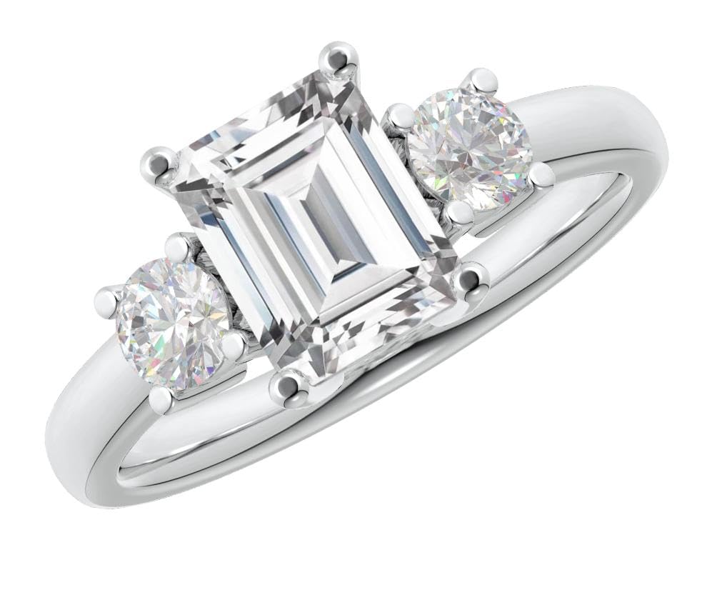3.5 Carat Emerald LAB GROWN Gemstone and LAB GROWN Diamond Engagement Ring (3.0ct Center, AAAA Heirloom Quality) RIPS102W3DI 14K White Gold