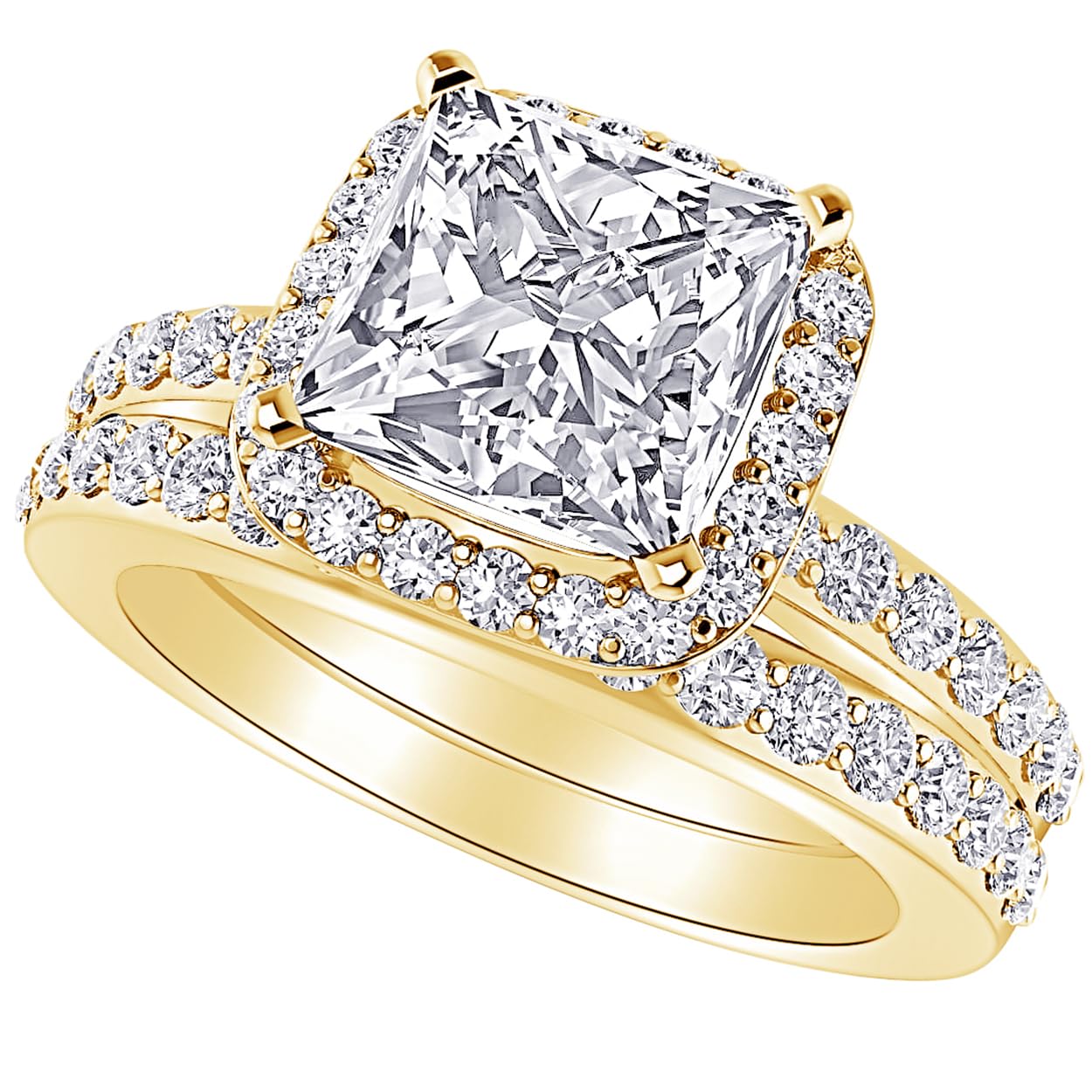 Home 1.5 Carat Princess LAB GROWN Gemstone and LAB GROWN Diamond Wedding Bridal Set (1.0ct Center, AAAA Heirloom Quality) RISV26W0DI 14K Yellow Gold