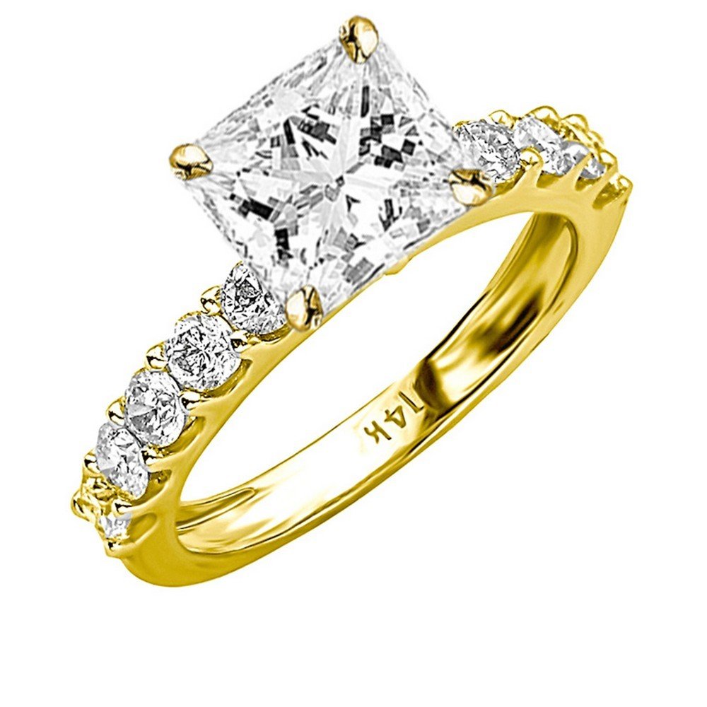 Houston Diamond District 3 to 7 Carat LAB GROWN IGI CERTIFIED DIAMOND Classic Side Stone Prong Set Princess Cut Diamond Engagement Ring (E-F Color VS1-VS2 Clarity) 14K Yellow Gold 5 Carat Size-8.5