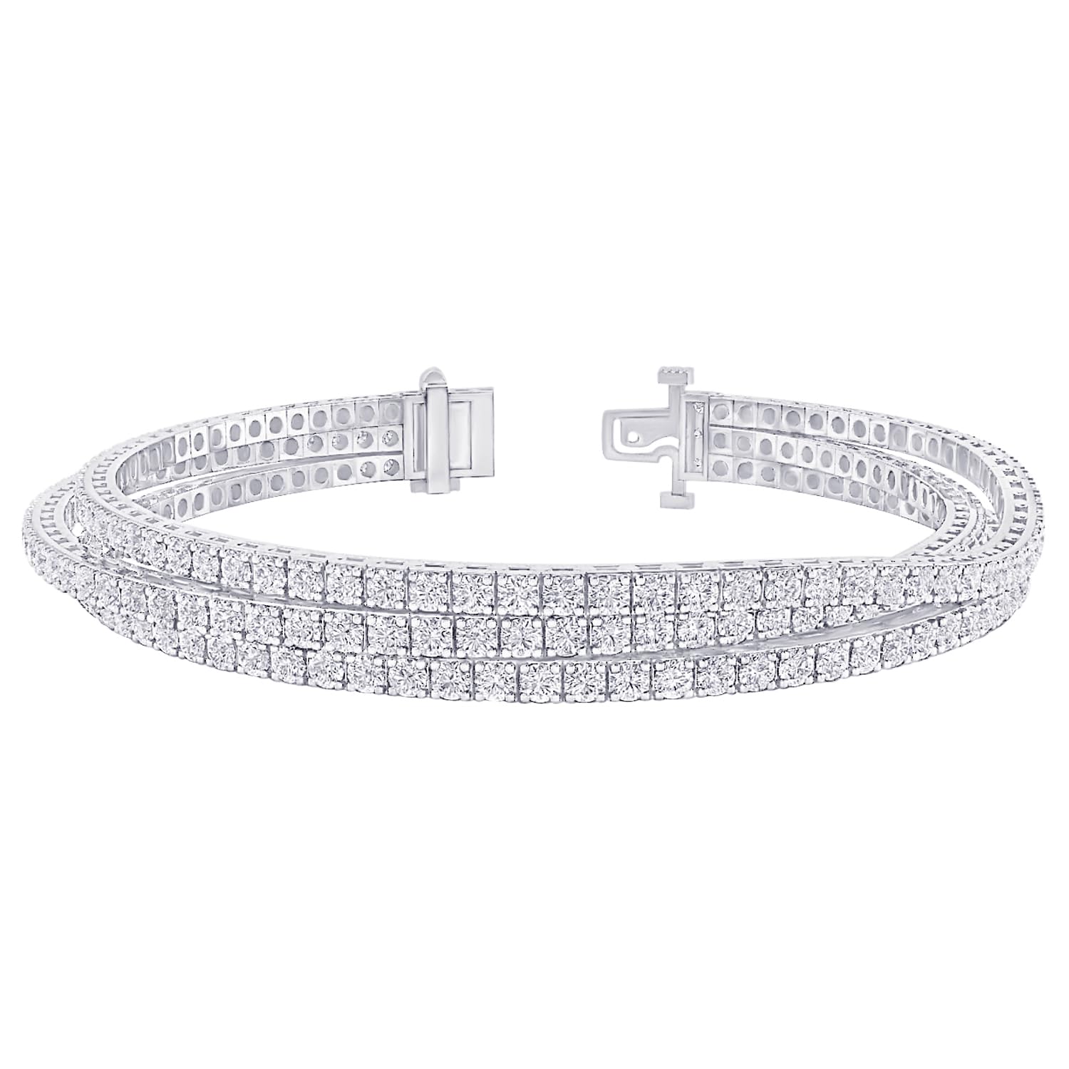 5 Carat (ctw) 14K White Gold Cut LAB GROWN Round Cut Triple Strand Flexible Diamond Tennis Bracelet (Color D-E Clarity VS1-VS2)