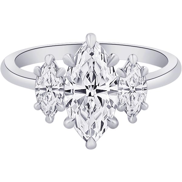 Houston Diamond District 0.5 to 5 Carat 14K White Gold IGI Certified LAB Grown Diamond 3 Stone Engagement Ring (D-E Color, VS1-VS2 Clarity) Marquise Shape 3 Carat Size-4