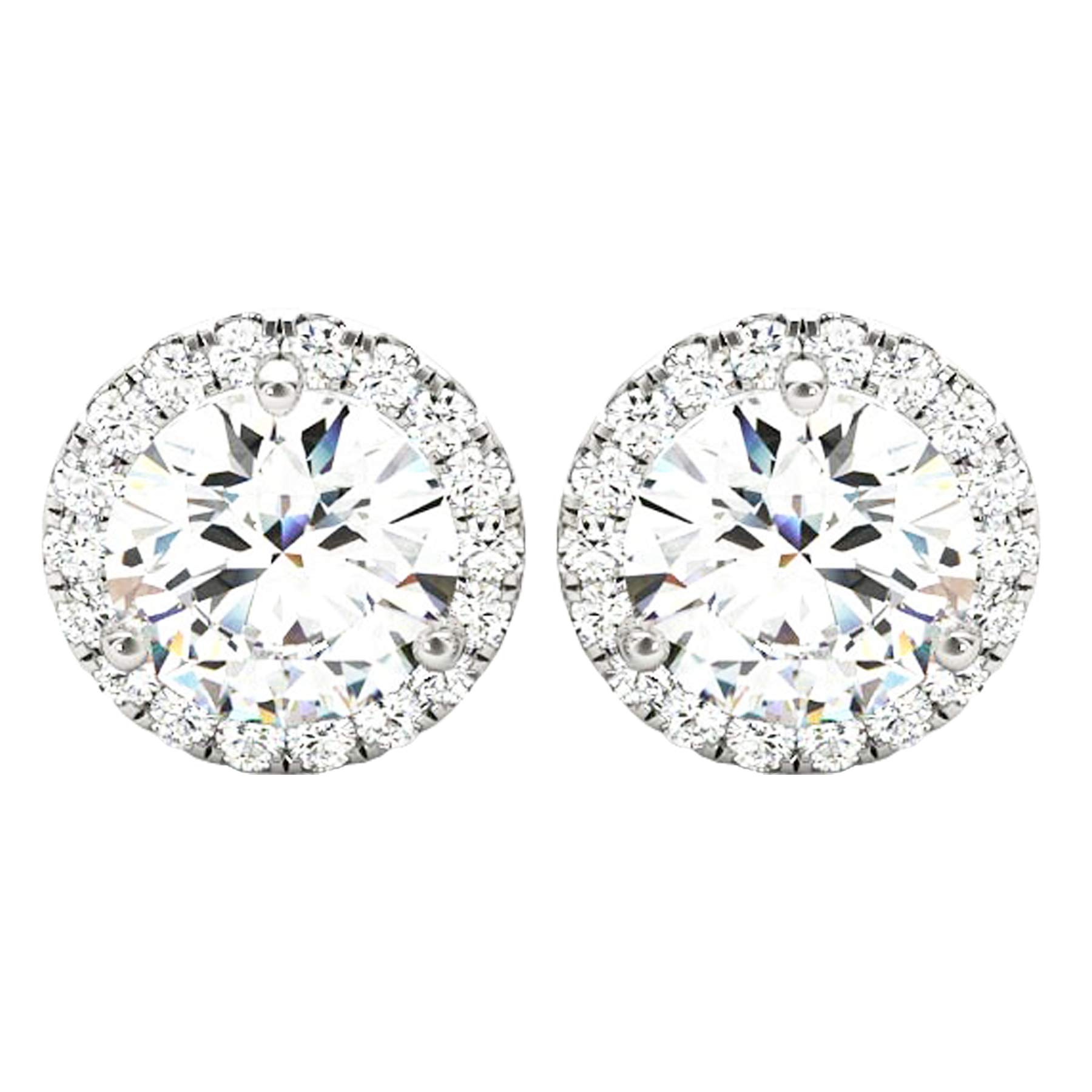 4 Carat IGI CERTIFIED LAB GROWN Halo Diamond Earrings Platinum Value Collection Push Back (D-E Color, VS1-VS2 Clarity) IDEAL CUT