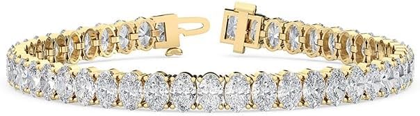 Houston Diamond District 2 to 28 Carat Lab Grown Diamond Classic Tennis Bracelet, 4-Prong Setting for Women (E–F Color, VS2–SI1 Clarity) 14K Yellow Gold 10 Carat Oval Shape