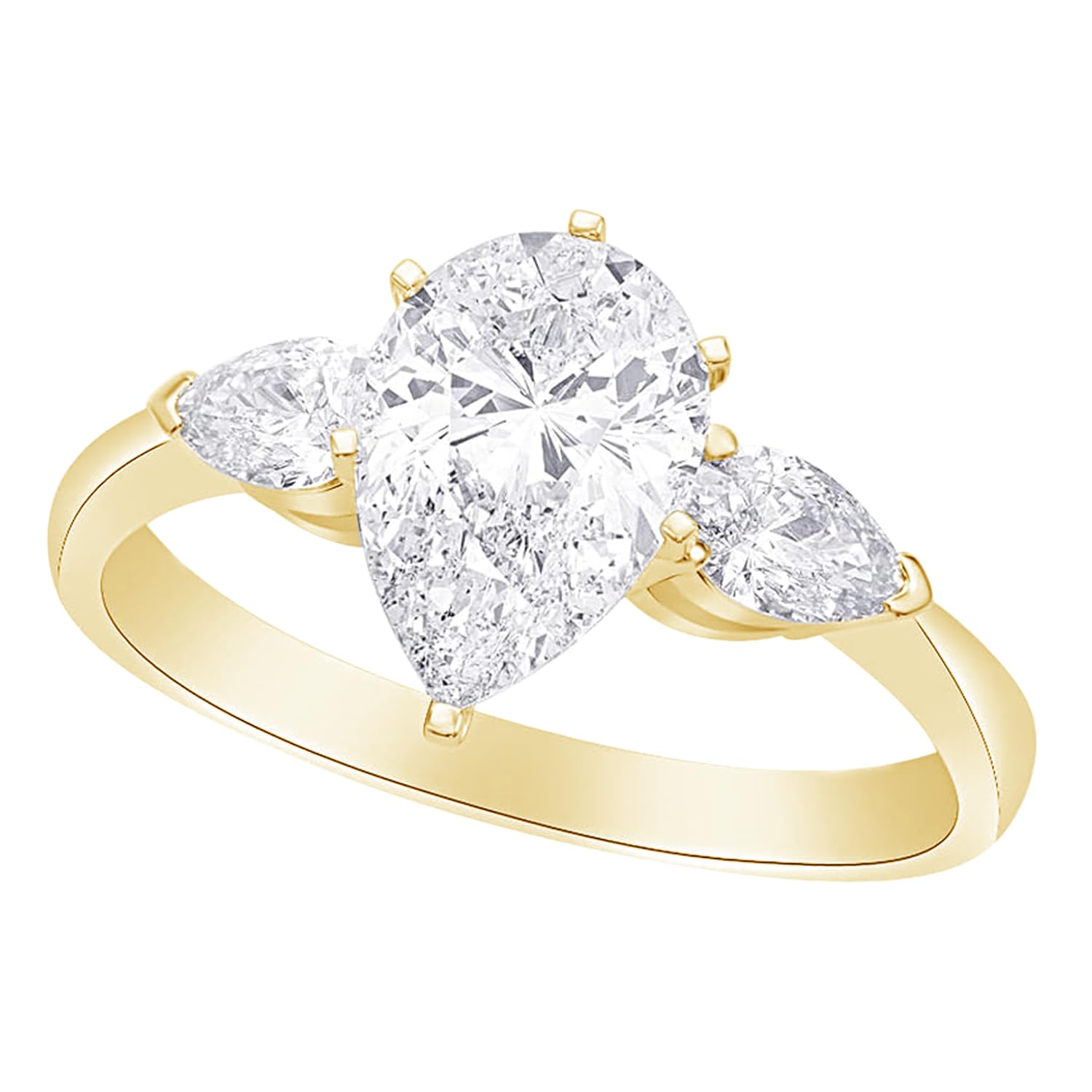 Houston Diamond District 0.5 to 5 Carat IGI Certified LAB Grown 3 Stone 14K Yellow Gold Round Diamond Engagement Ring (D-E Color, VS1-VS2 Clarity) Pear 4 Carat Size: 6.5
