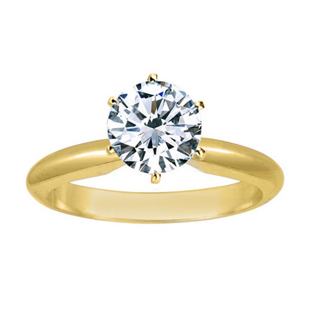 Houston Diamond District 1 to 5 Carat IGI CERTIFIED Lab Grown Diamond 6 Prong Solitaire Round Cut Engagement Ring (E-F Color VS2-SI1 Clarity) 14K Yellow Gold 4 Carat Size: 10.5
