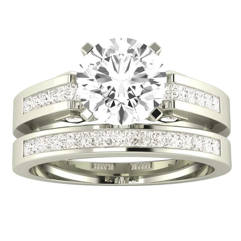 3.5 Carat Classic Lab Platinum Synthetic Lab Grown Round Channel Set Princess Wedding Bridal Set IGI Certified Diamond Engagement Ring (1 Ct, H-I Color, VS1-VS2 Clarity Center)