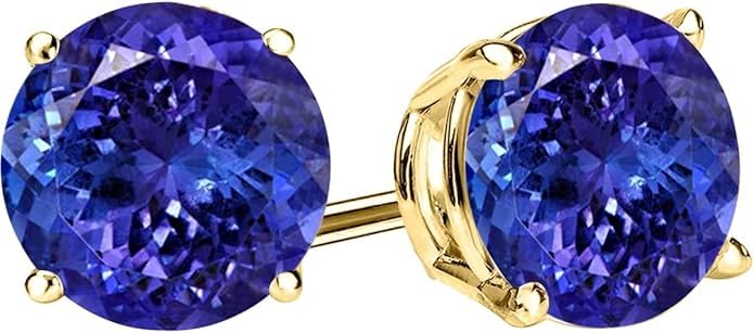 18K Yellow Gold 1 Carat Natural Tanzanite Stud Earrings 4 Prong Push Back for Women