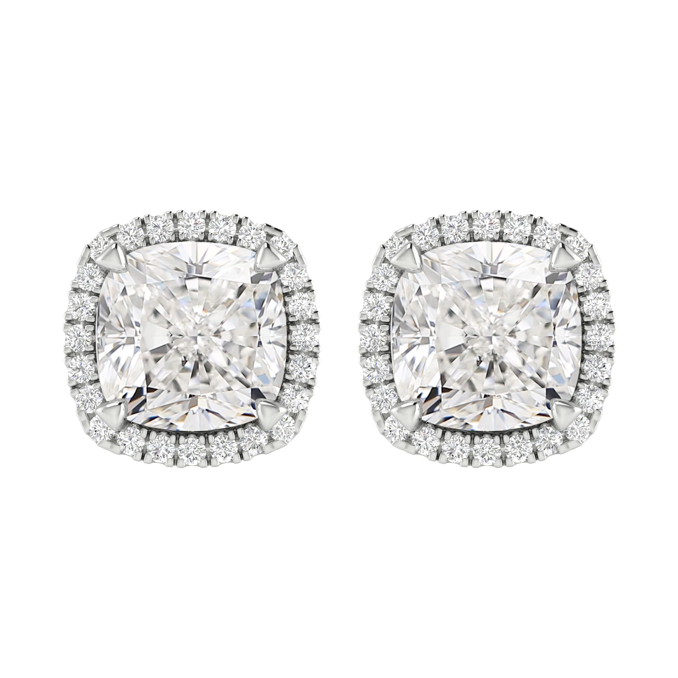 5 Carat IGI CERTIFIED LAB GROWN Cushion Halo Diamond Earrings 10K White Gold Value Collection Screw Back [D-E Color, VS1-VS2 Clarity]