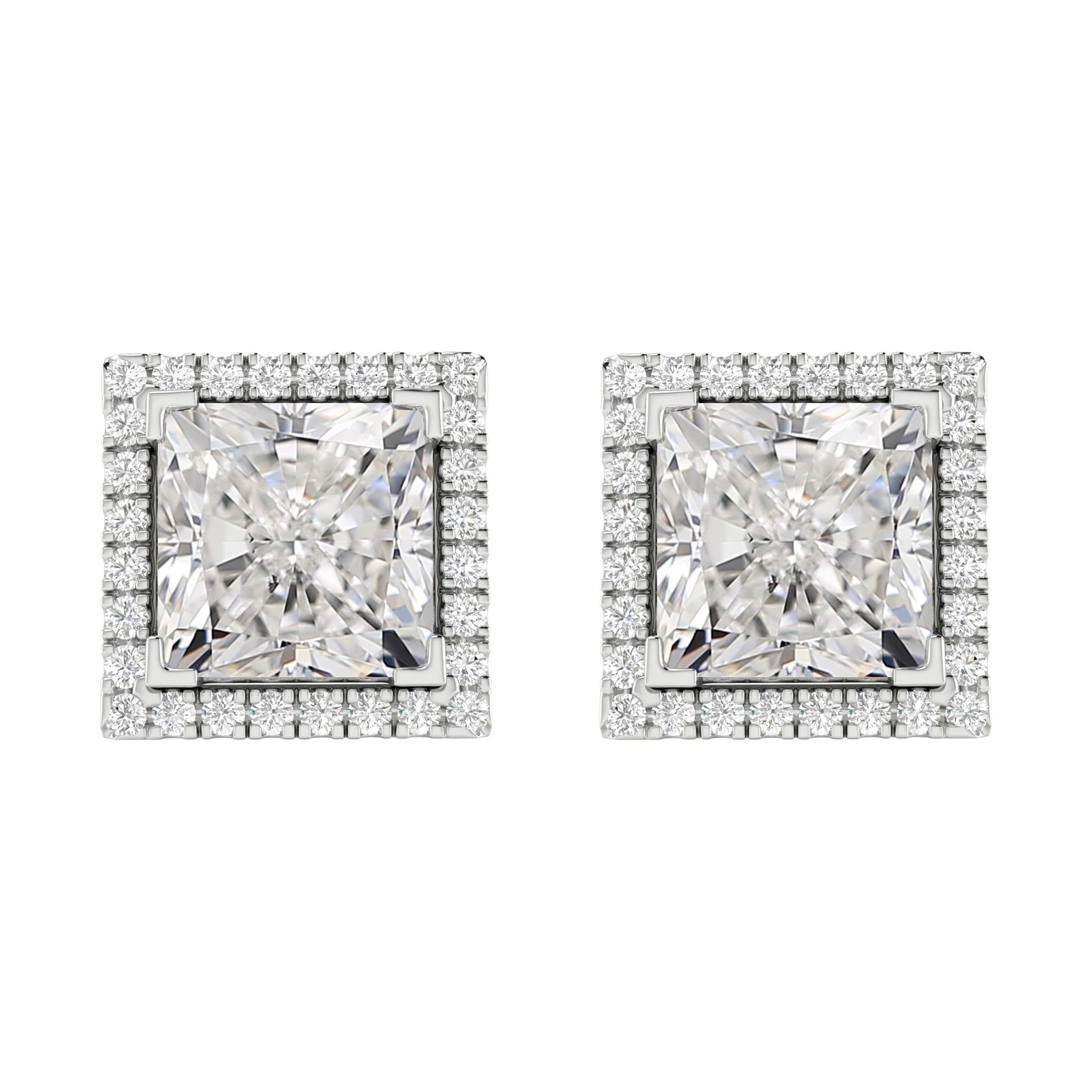 Home 4 Carat IGI CERTIFIED LAB GROWN Princess Halo Diamond Earrings 10K White Gold Value Collection Screw Back [D-E Color, VS1-VS2 Clarity]