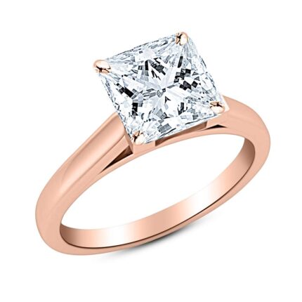 2 Ct Princess Cut Cathedral Solitaire Diamond Engagement Ring 14K Rose Gold (J Color SI2 Clarity)