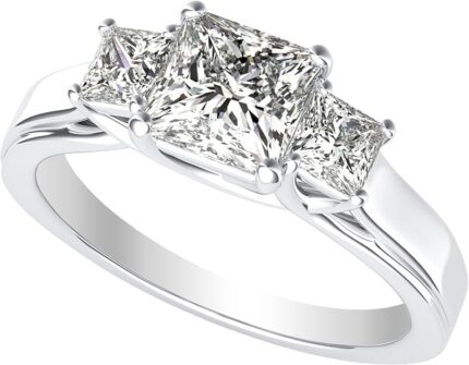 2 Carat 3 Three Stone Princess Diamond Engagement Ring 14K White Gold H-I Color VS1-VS2 Clarity